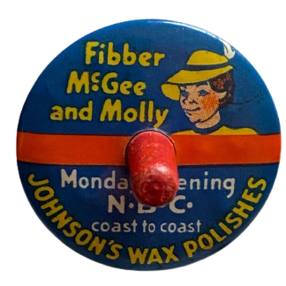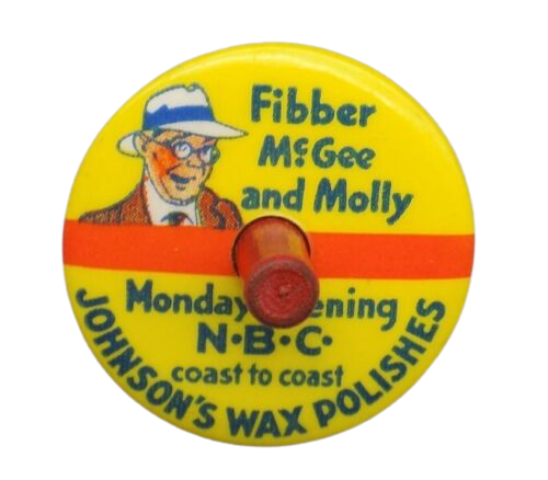 Day at a Glance allowed marking programs one wished to hear on the paper cards (one for each day) c. 1930. Pinback, purpose and date unknown.