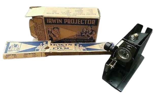 Renwal console radio, dollhouse furniture, c. 1950. Robbins tape cleaner for reel-to-reel tape recorder, c. 1970.