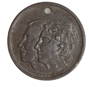 Spiderweb coil used for antenna circuit tuning, 1920s. Pinback, date unknown.