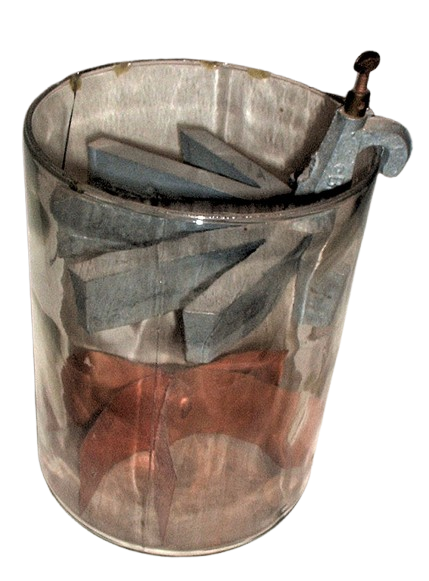 Spiderweb coil used for antenna circuit tuning, 1920s. Pinback, date unknown.