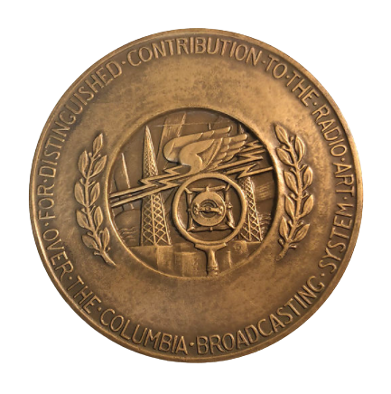 Columbia Broadcasting System Distinguished Service Medal, front and rear, designed by Gaetano Cecere. Medal was issued between 1929 and 1937.