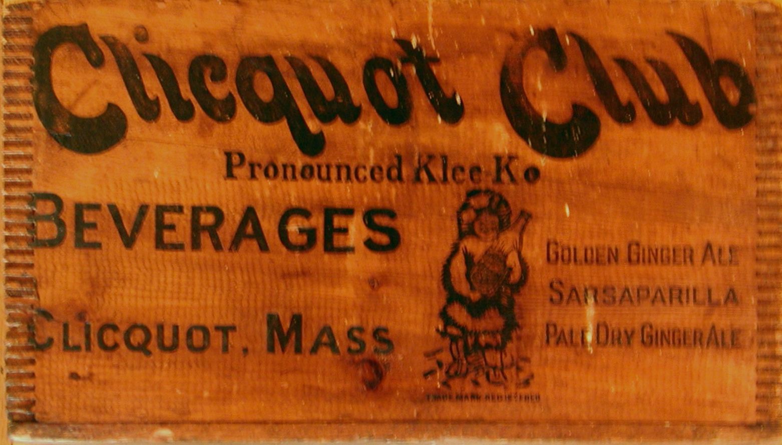 Cliquot beverage crate. Cliquot was a very early radio advertiser. The "Cliquot Club Eskimos" (the band actually dressed in mucklucks, was very popular.