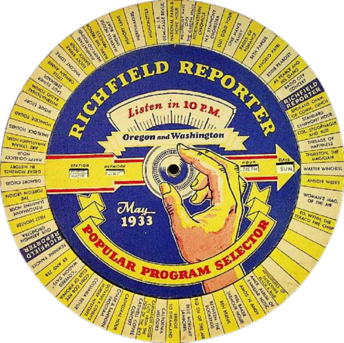 Richfield Reporter station finder. News program was sponsored by Atlantic Richfield