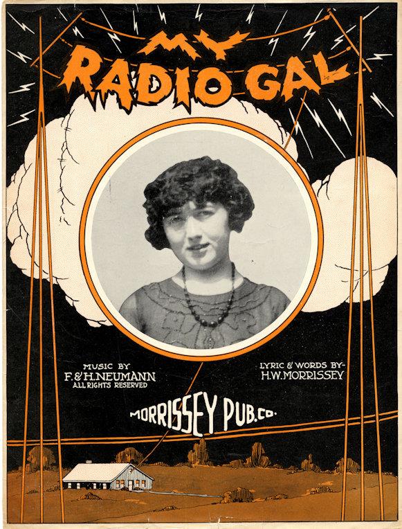 And then there was the romance of radio -- and its role in romantic life. A lyric as meaningless as "The Girl with the Radio Eyes" seemed to marry radio with romance in a completely illogical way. "Send a Kiss By Radio," "Radio Lady of Mine" and "My Radio Girl" all made more plausible connctions between amour and the new wonder of radio.