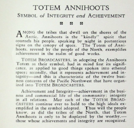 Totem Broadcasters "Anihoots" logo (above) and explanation (below)