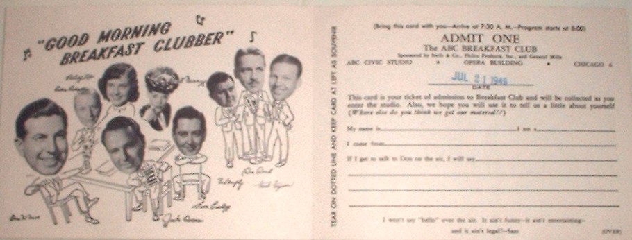 The Breakfast Club, developed in and broadcast from Chicago, was hosted throughout its long life by Don McNeill. The program was structured in distinct segments which focused around the "call to breakfast" and had many featured performers over the years. Described by some as one of the corniest programs imaginable, it was a creature of its time reflective of a far simpler American life that developed in the latter portion of the 1990s. As much as its was seemingly outdated, its endurance until 1968 was a testimonial to the dedication of its audience. It was the last live, entertainment program carred on ABC (by the of its run it was being carried on the American Entertainment Radio Network, one of the four networks into which the ABC Radio Network split itself in 1968 and was the motive for naming that network for "entertainment."